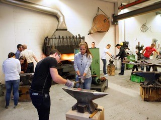 Nach einer kurzen Einführung in die Metallbearbeitung wagt sich jeder selber an's Werk. Die Funken sprühen und mit jedem Schlag findet das Eisen mehr zu seiner Form, immer begleitet vom professionellen Kunstschmied. In lockerer Atmosphäre stellen die Teilnehmer ein individuelles oder gemeinsames Objekt her und lernen dabei ein uraltes Handwerk kennen.